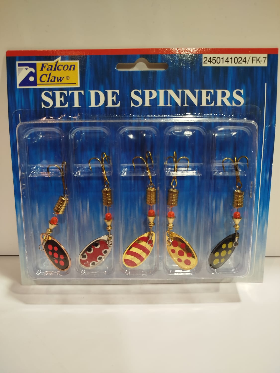 - Set de spinners falcon claw FK-7 funciona muy bien tanto para agua salada como para agua dulce y funciona bien en todas las capas de agua. Todos los señuelos de pesca, satisfacen las necesidades de diferentes variedades de peces que capturas, ideales para la pesca de truchas en ríos y lagos. -Set incluye 5 spinners distintos colores.