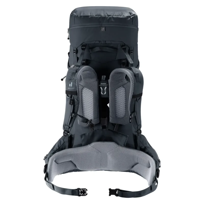 Mochila fácil de transportar y con buena distribución de carga gracias al sistema dorsal deuter Aircontact con malla Air Spacer y amplio canal de ventilación, además de tirantes cómodos, aletas móviles y refuerzo lumbar ergonómico. Una cremallera frontal en forma de J permite alcanzar los objetos en el compartimento principal que están más abajo. Los bolsillos extraíbles de 3 litros de las aletas ofrecen más espacio para guardar cosas a mano. Y un portabotellas con cremallera desmontable de 1,5 litros te permite hidratarte sobre la marcha.