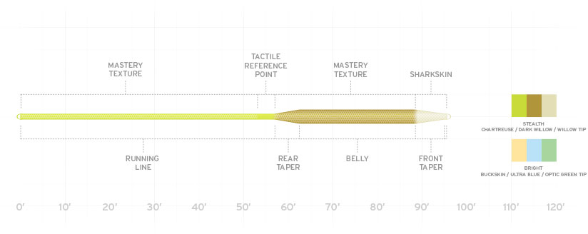 Con textura Sharkskin en la punta, textura Mastery en la cabeza y la línea de carrera, y una sección de manejo suave en el extremo de la cabeza, SharkWave es la familia de líneas de mosca tecnológicamente más avanzada del mercado. Cada cambio de textura también implica un cambio de color, así que, si no eres demasiado daltónico, tendrás una referencia visual para cada sección de la línea. La textura reduce la fricción en el agua y a través de las anillas, lo que proporciona lances más largos, mayor flotabilidad y recogidas más fáciles. Es pesca. Sin fricción.